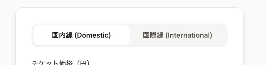 画面上部のタブで「国内線」「国際線」を切り替えます。